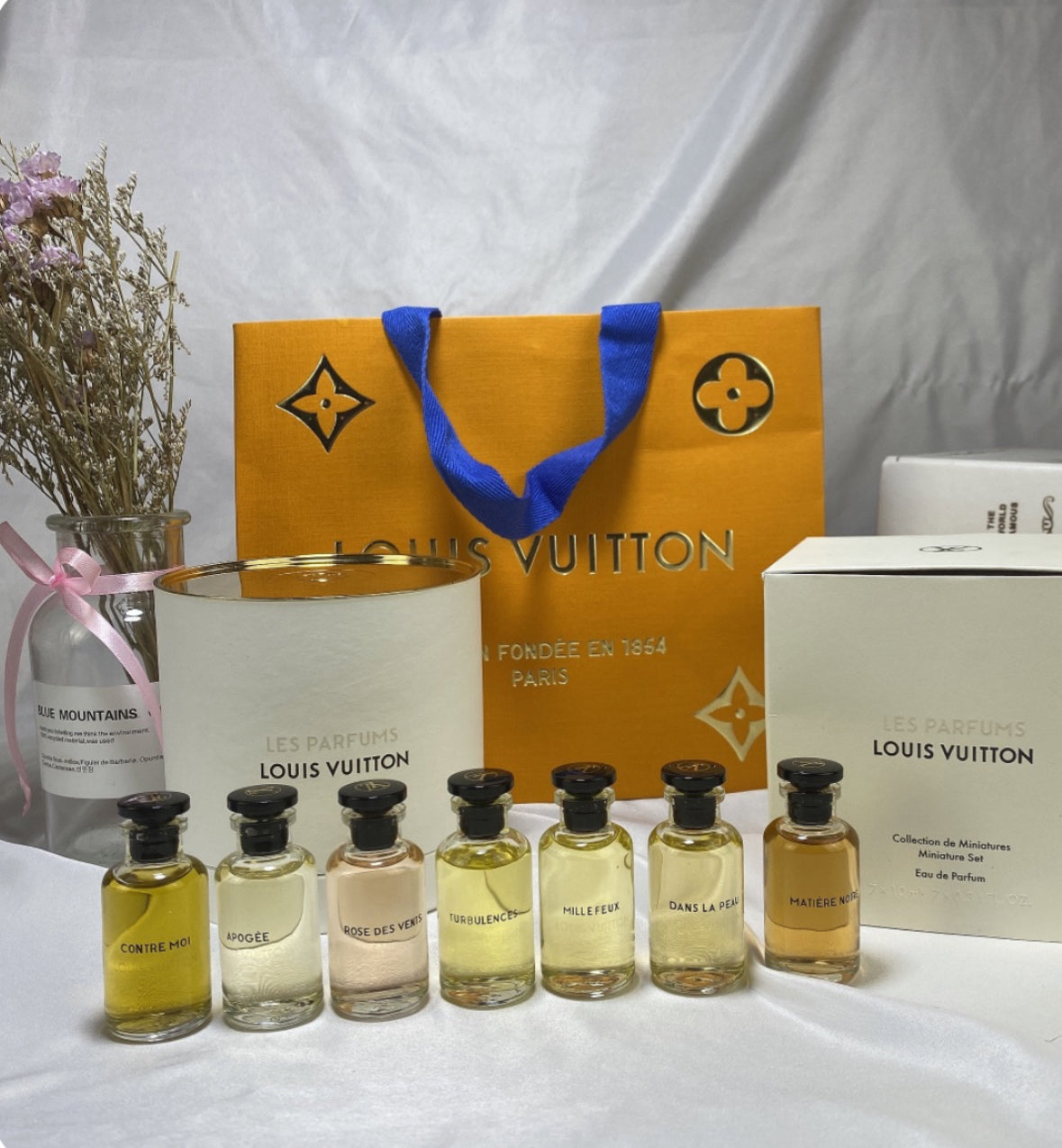 מארז מהודר של 7 בשמים אייקוניים מבית היוקרה Louis Vuitton, כל אחד בבקבוק מיני מעוצב בנפח 50 מ״ל. חוויה מושלמת למי שמחפש להתנסות במגוון הניחוחות האהובים של המותג או כמתנה יוקרתית ומפנקת.